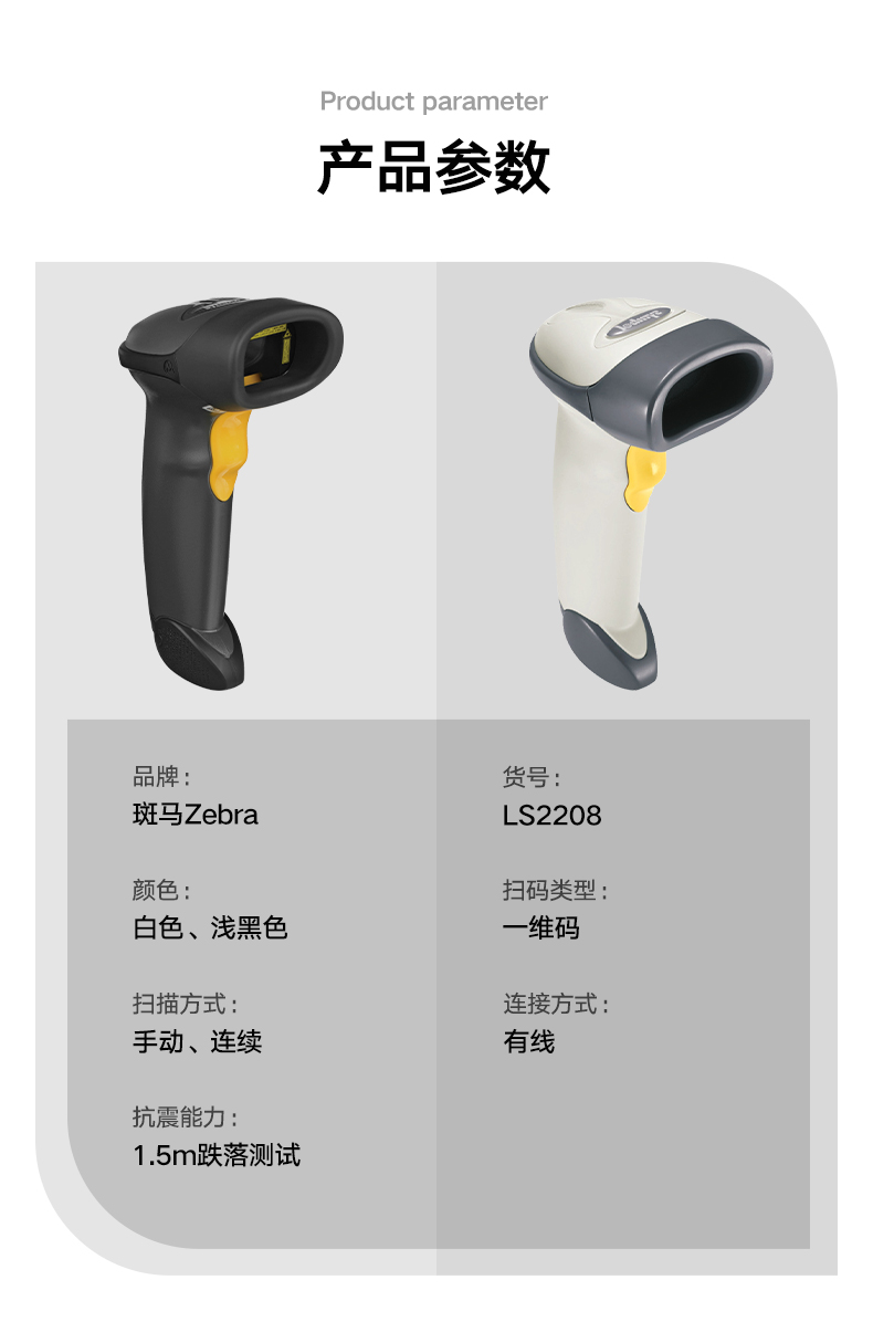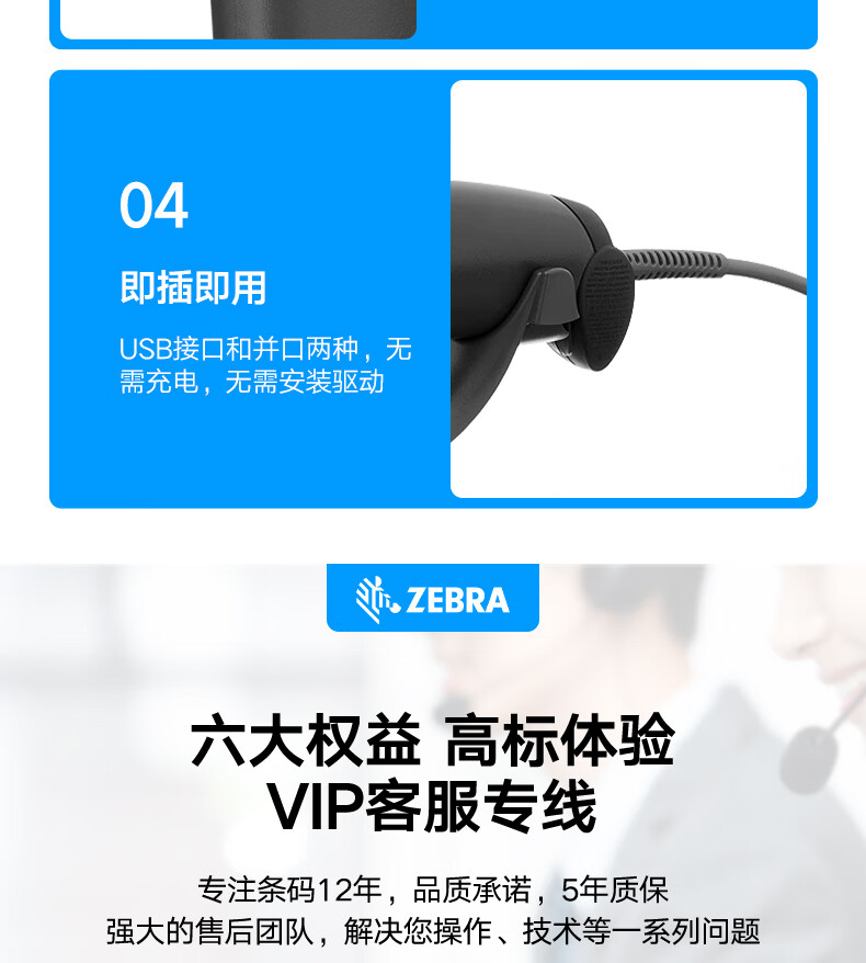 ZEBRA 斑马DS2208/2278一二维码条码枪条码枪扫码器 商超烟酒零售服装药店商品微信收银 DS2208-SR二维标配有线